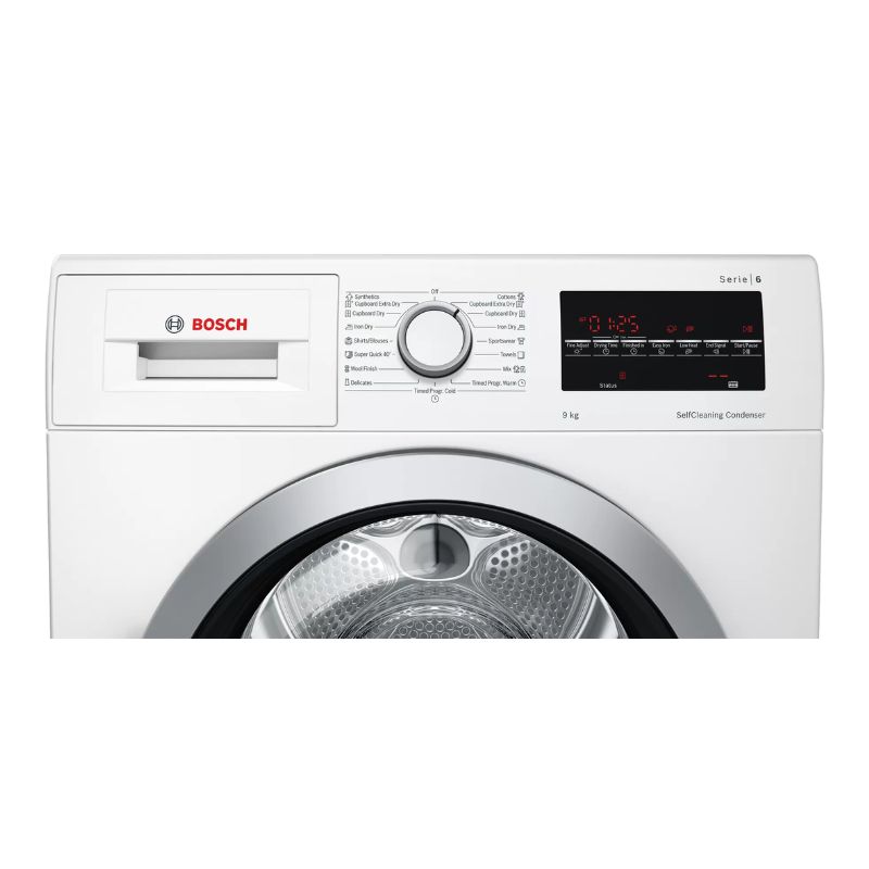- Các nút cảm ứng: basic settings, end of program delay, easy ironing, memory 1, memory 2, setting / selection options, on / off, delayed start, start / reload / pause, degree of drying, 24 hours delay of program end
